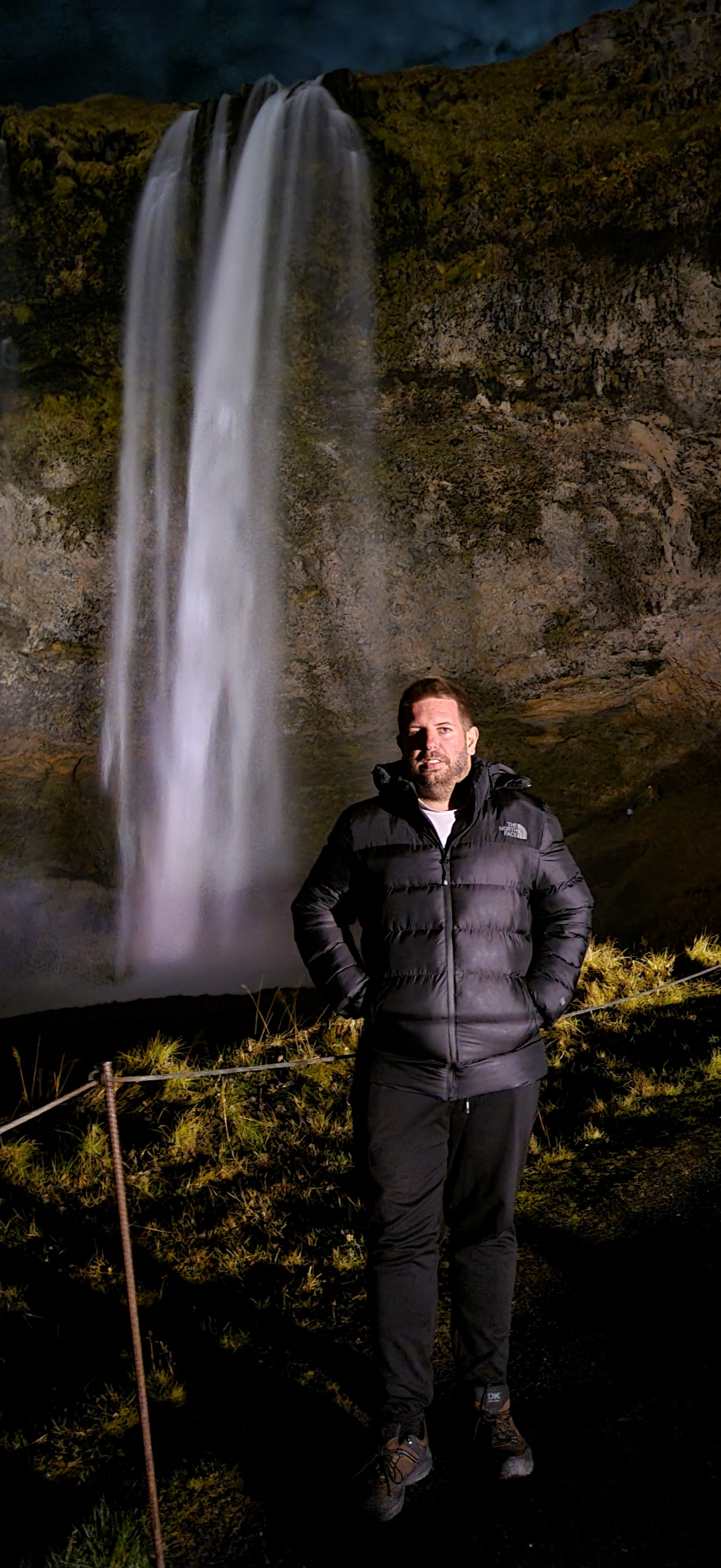 Na povratku ka Reykjaviku posjetili smo i drugi slap. Dan na Islandu u 10-om mjesecu traje kratko pa nas je tako zahvatila noć. Ali slap Seljalandsfoss se može pogledati i po noću jer je okolo postavljeno veliko osvjetljenje. Tu nam se dogodila jedna nezgoda, ne bih ja bio ja da ne pokušam se i po noći svuda popeti.