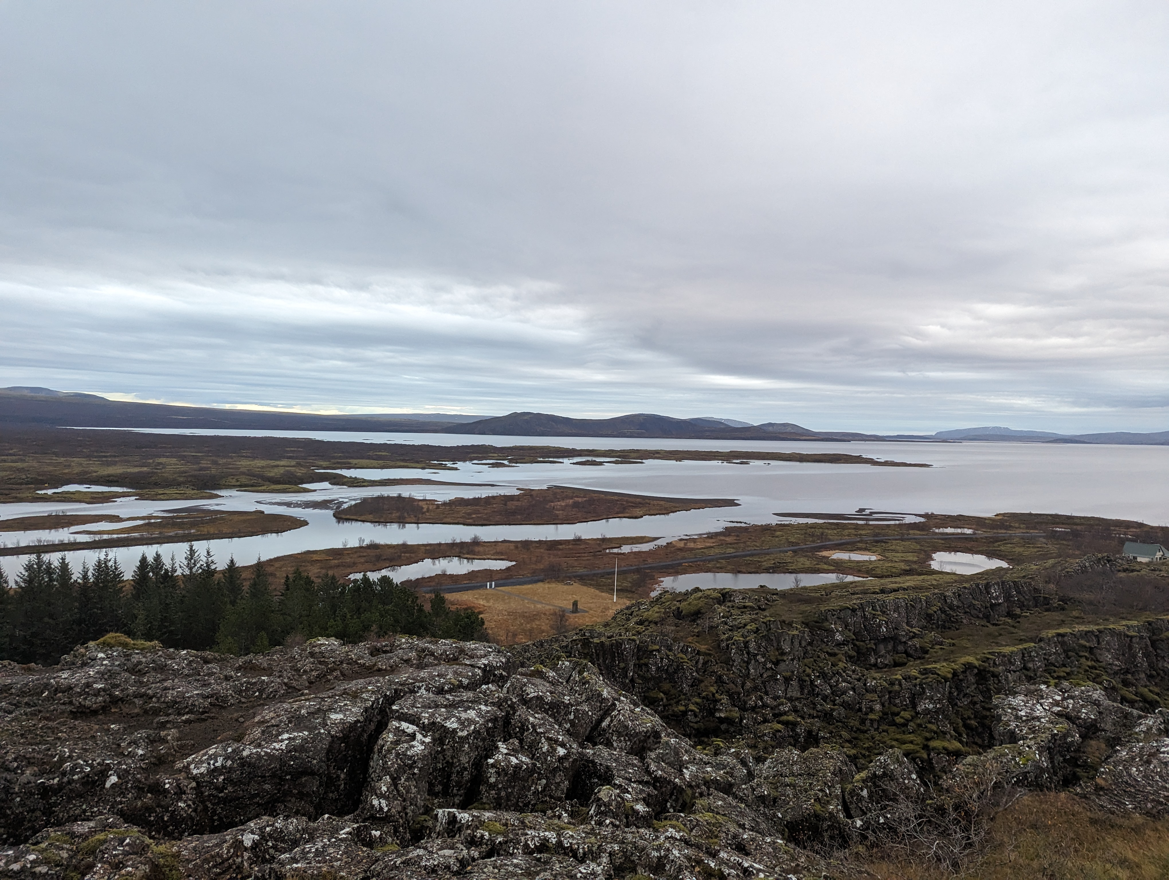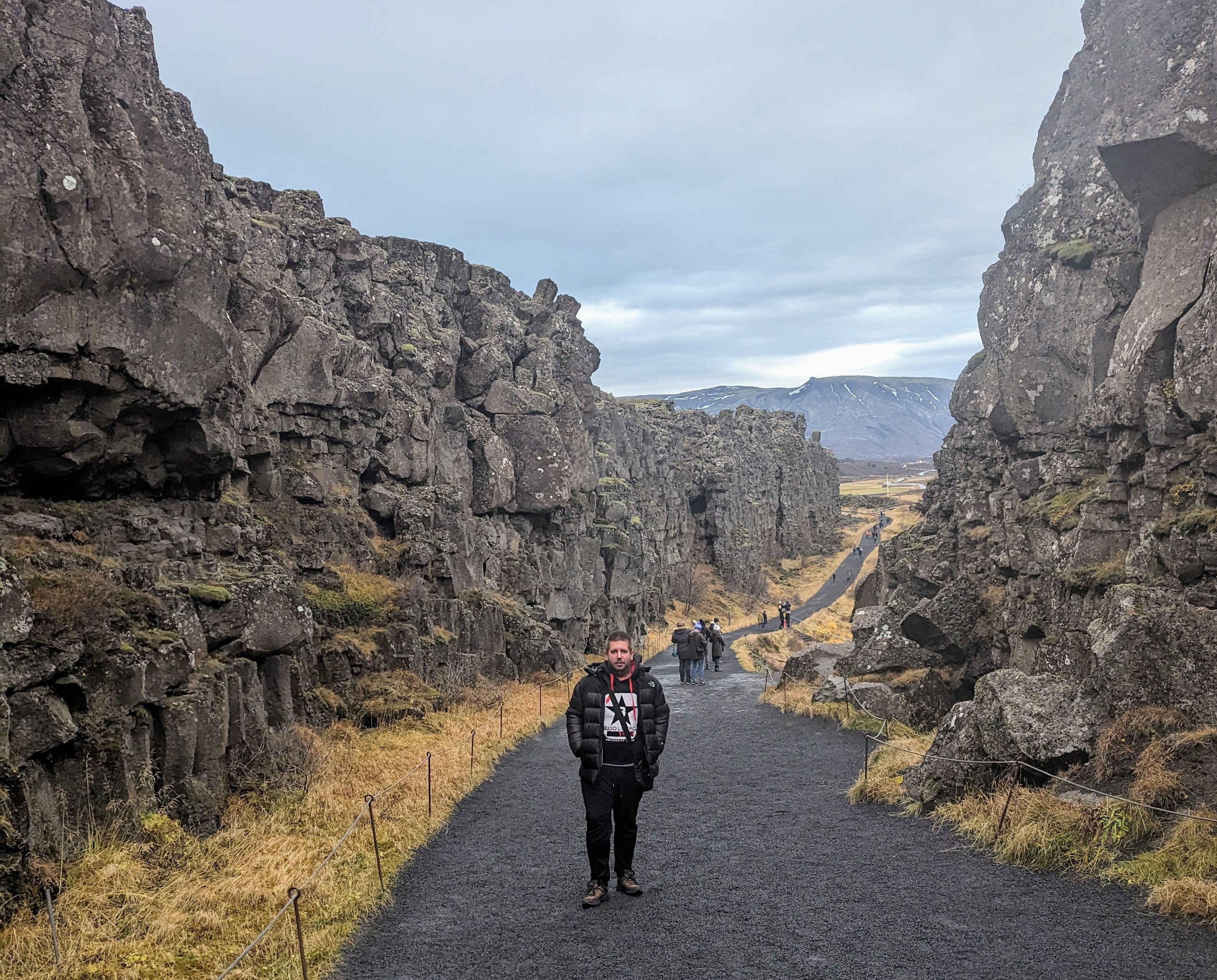 Tijekom našeg prvog zaustavljanja posjetili smo nacionalni park Þingvellir. Þingvellir je mjesto gdje se američka i euroazijska kontinentalna ploča dramatično razdvajaju godišnjom stopom od 2 cm. Tu se također nalazi najveće prirodno jezero u zemlji, Þingvallavatn. Tamo je osnovan prvi parlament osnovan 930. godine od strane Vikinga. S vidikovca se može vidjeti kanjon Almannagjá između dviju tektonskih ploča.