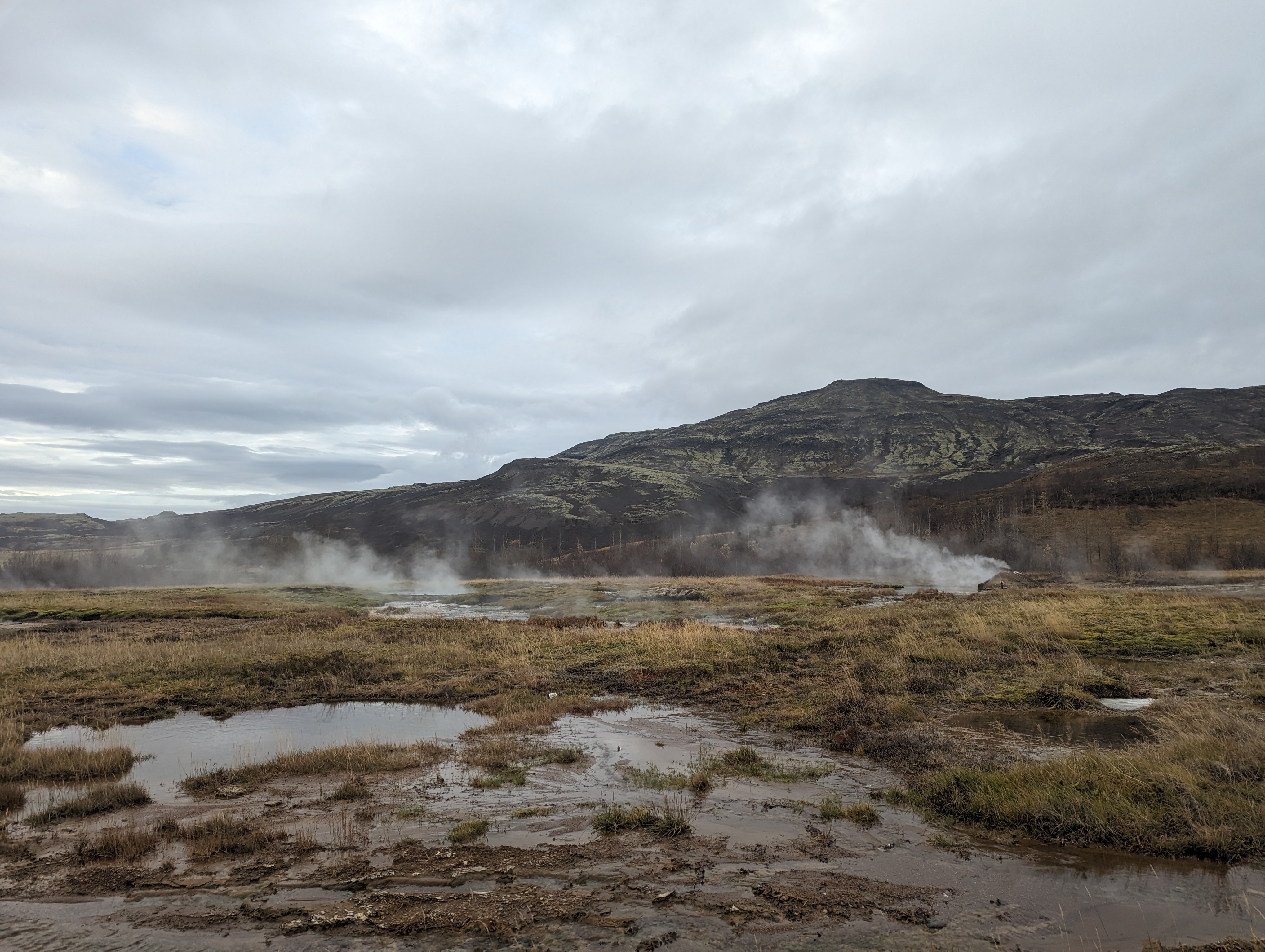 Nakon te lokacije otišli smo posjetite gejzire. Zapravo prvi put sam ih vidio u Boliviji. Iz tla izlazi vodena para koja izbija prema nebu iz Strokkur gejzira.